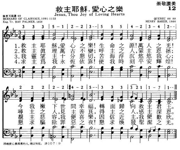 本诗是 Bernard 所作长诗的一部份,1858 年由美国 Congregational 的牧师 Ray Palmer 从拉丁文译为英文,常被使用在圣餐礼拜中。