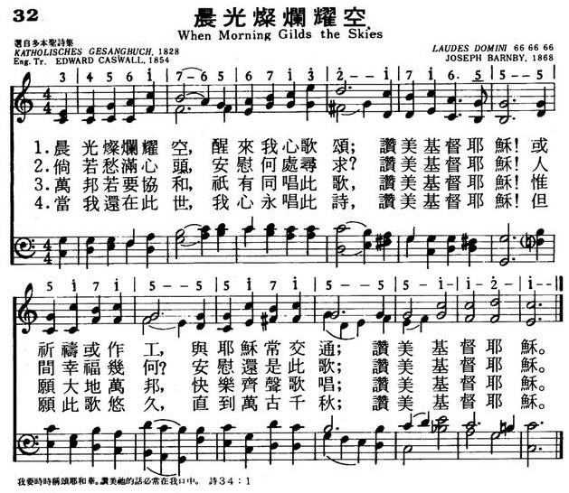 1.晨光灿烂耀空,醒来我心歌颂;
