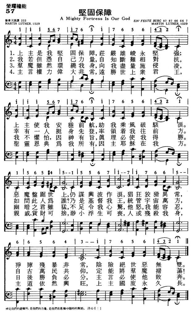 1.上主是我坚固保障,庄严雄峻永坚强;