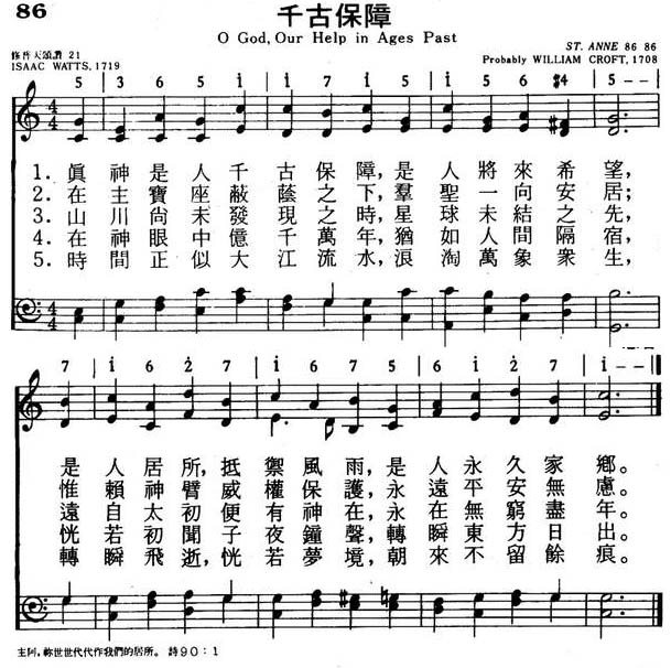 1714年,英女王驾崩不久,全国动荡骚乱不安,他根据诗篇九十篇改写了这首「千古保障」。 这首诗说明神是人类的千古保障,在祂里面,便能得安稳。 原诗共有九节,第一节的首句原为“Our God”,1738年约翰韦斯利在他的圣诗集中将它改为“O God”,一直沿用迄今。
