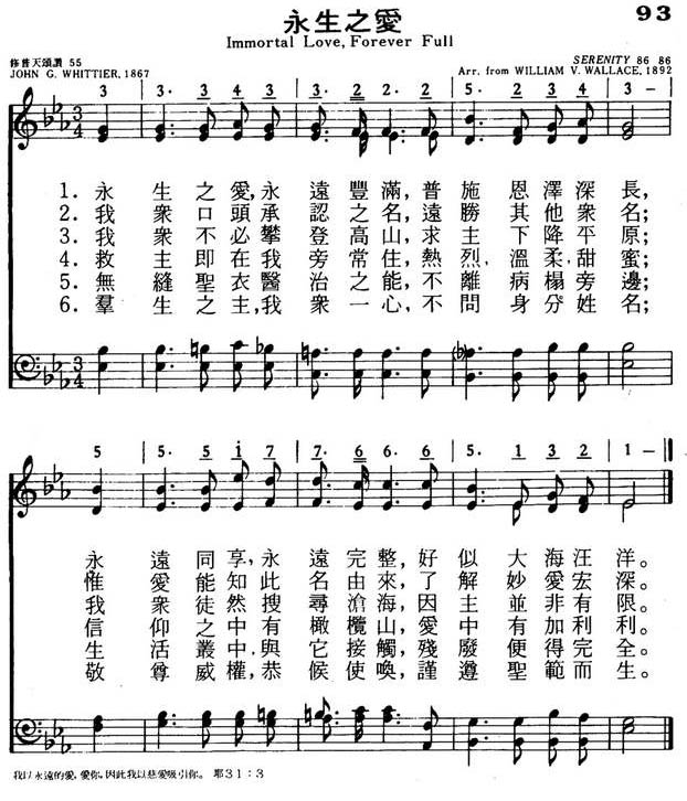 《新编赞美诗》收录在第50首《永生之爱歌》