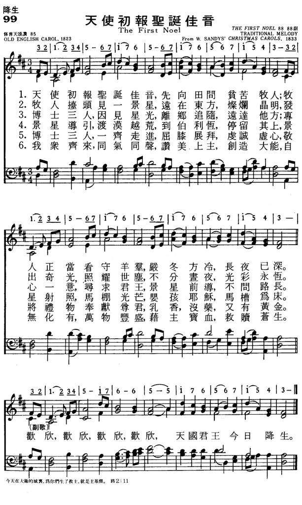 这首歌外文的标题上(The First Noel)的NOEL一词来自拉丁语NATALIS,意思是“生日”、“诞辰”,也特指耶稣基督的降生。欧洲各国有许多以NOELS、NOWELS、NOEWLLS为名的圣诞歌曲,这是其中最为著名的一首。