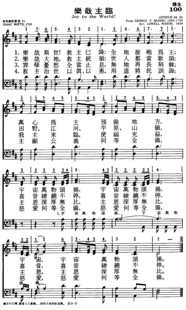 1.乐哉斯世!救主已降:全地接祂为王;