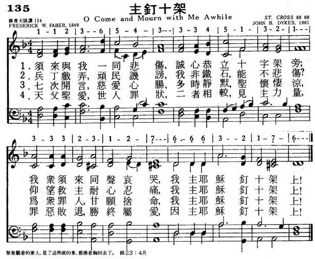 1.须来与我一同悲伤,诚心恭立十字架旁;