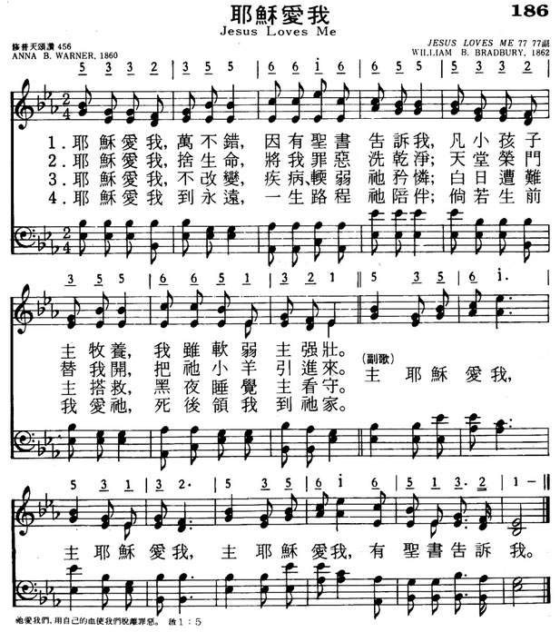 1.耶稣爱我,万不错,因有圣书告诉我;
