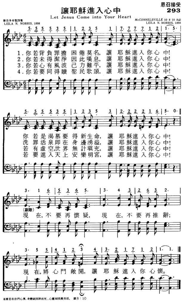 4.你若要同得赎圣民歌颂,让耶稣进入你心中!