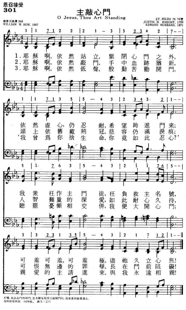 1.耶稣啊,依然站立,紧闭心门之外,