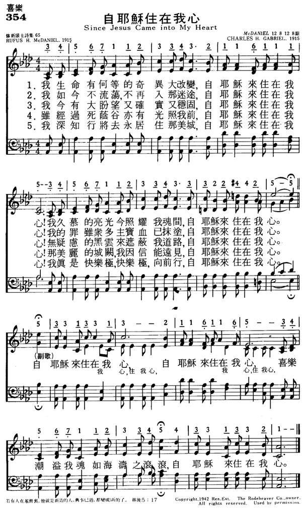 《自耶稣住在我心》(“Since Jesus Came Into My Heart”)又译为《耶稣住我心歌》。