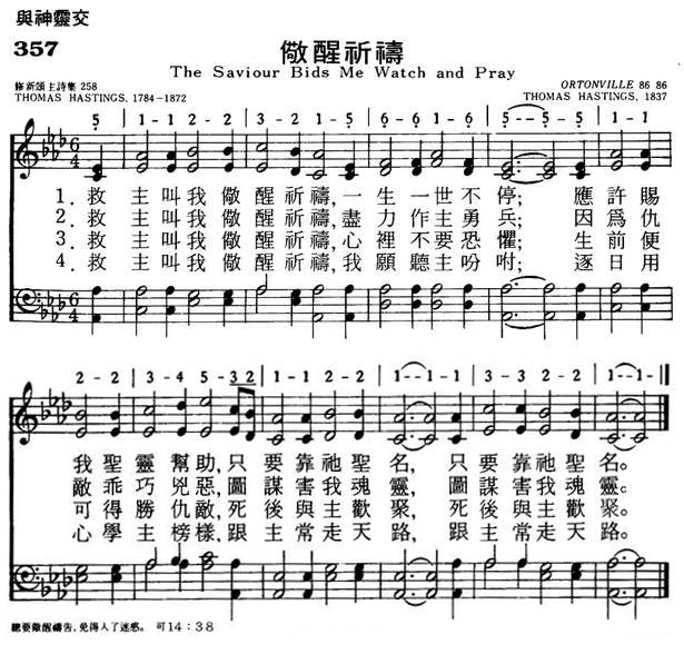1.救主叫我儆醒祈祷,一生一世不停,应许赐我