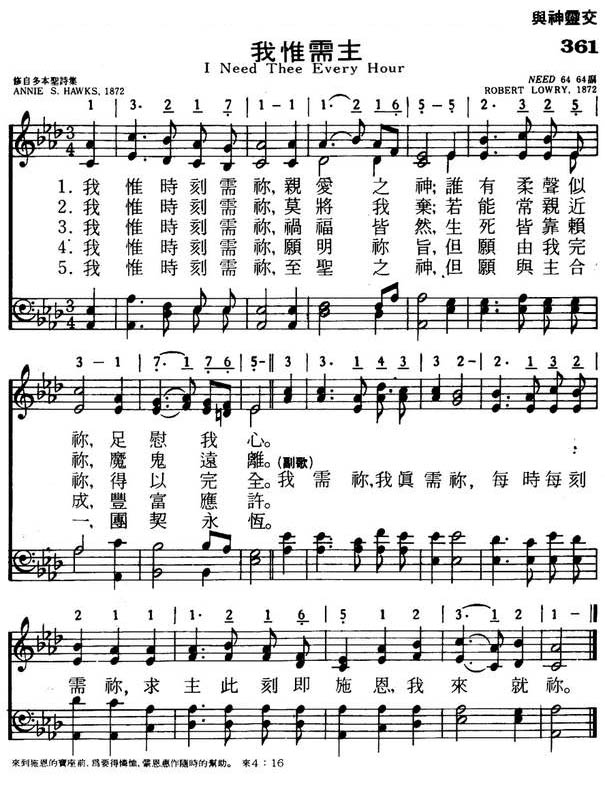 2.我惟时刻需你,莫将我弃,若能常亲近你,
