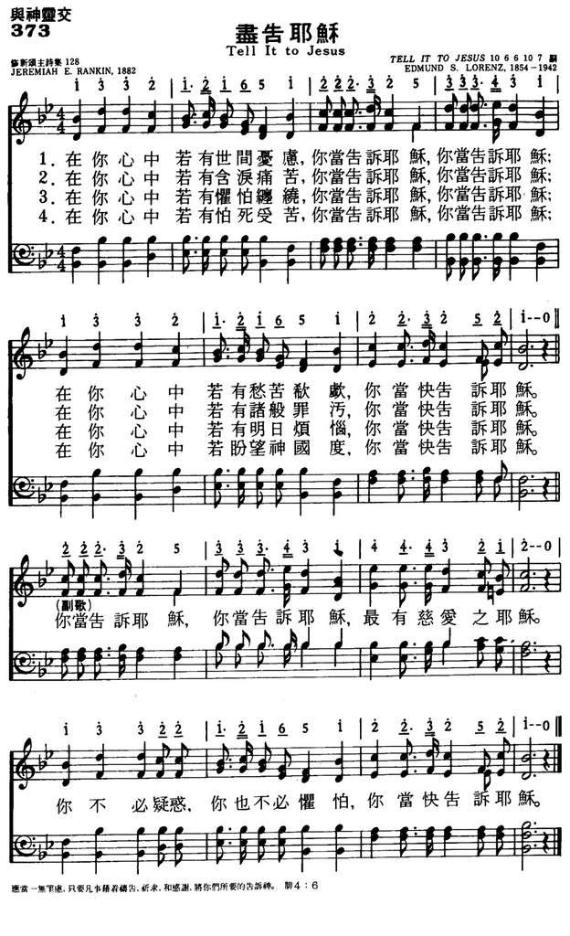 2.在你心中若有含泪痛苦,你当告诉耶稣,
