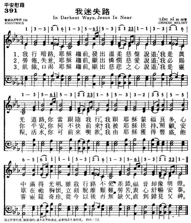 1.我行暗路,耶稣趋前,发出温柔慈声说道,