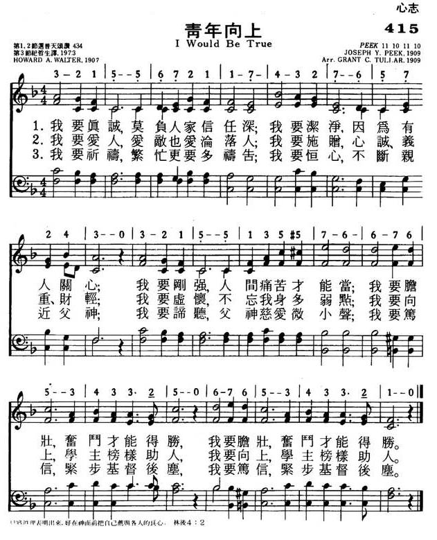 这首诗被刊载后,深获年轻人喜爱。1909年卫理公会的信徒皮克(Joseph Yates Peek,1843-1911),在一次聚会上遇见华尔德,两人相谈甚洽,临别时,华尔德送给皮克一张卡,上面印有“我的信条“,皮克阅后深受感动,相信配上音乐必能流传更广,但他不会作曲。
