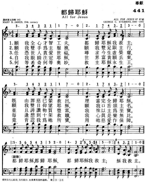 都归耶稣,都归耶稣,都归耶稣我救主。