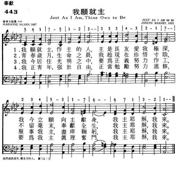 服事我主,尽瘁鞠躬,我主耶稣,我来。