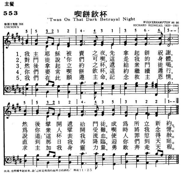 1.我主耶稣被卖之夜,先拿起饼祝谢,