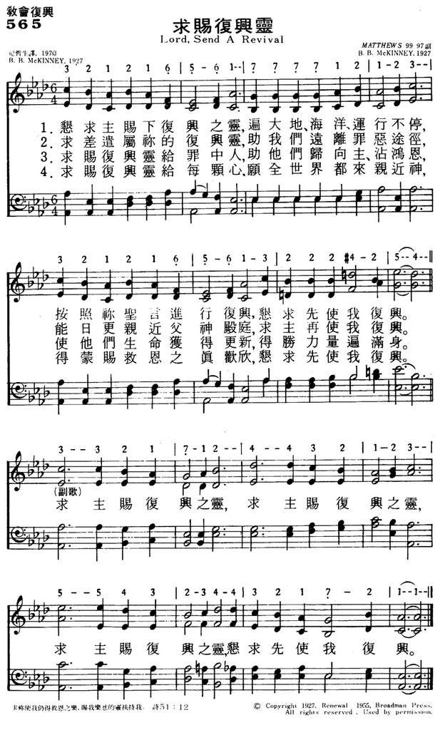 (副)求主赐复兴之灵,求主赐复兴之灵,