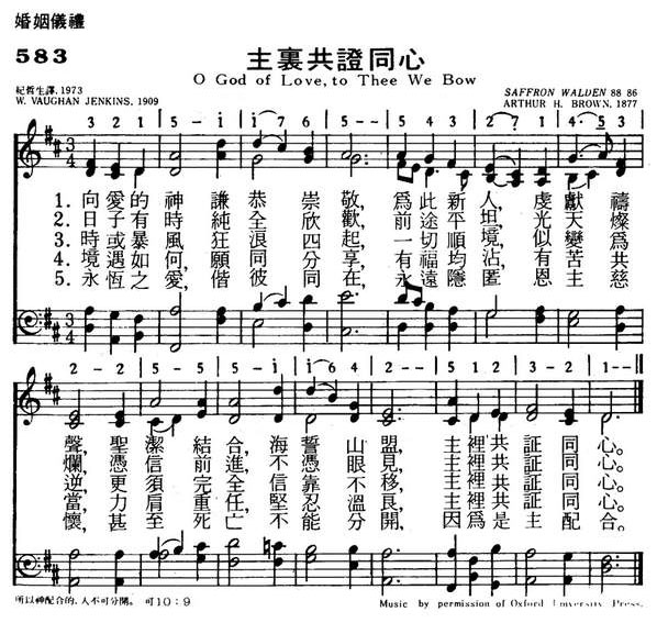1.向爱的神谦恭崇敬,为此新人,虔献祷声,