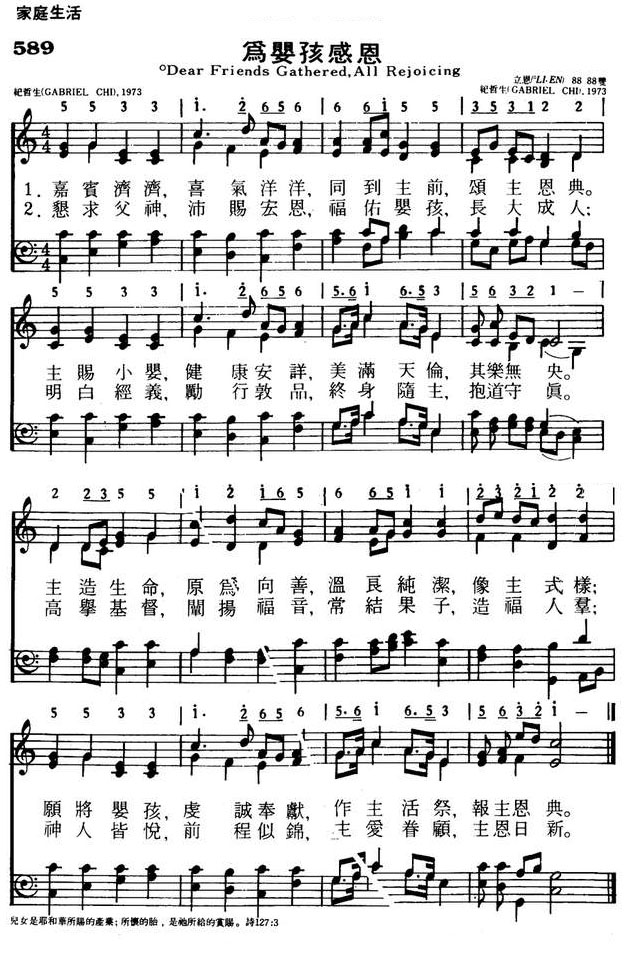 2.恳求父神,沛赐宏恩,福佑婴孩,长大成人;