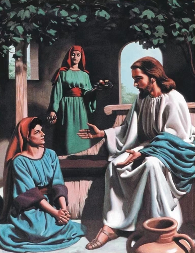 正因为马利亚是追随神的女子,她总是只专心一意地单求一事,一件不可少的事:就是神自己!她这样的选择就是服事,如此一来也同时达成了神所赋予的责任。我们的生活无时无刻不充斥着抉择,而马利亚有一重要的坚持:她总在面临抉择时,选择以敬拜神为优先。她显然已体会到,神同在的时光是无可取代的。这是事实,坐在他脚前的时光,确实能带来一切服事的热心与果效。并且,就如同主所说的,倾听神、敬拜神的时光是不能夺去的,因为道是用于追求永恒国度的时间,所得的福分也将持久不灭。在如此宝贵的时刻,马利亚的选择,是与神共度。