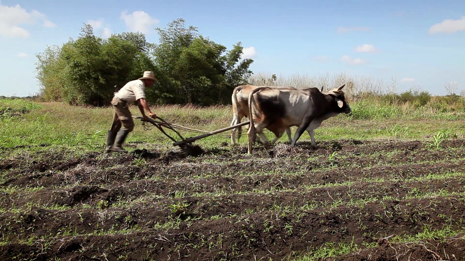 上图:一位农夫扶犁而耕,为播种做好准备。从主前3500年开始,美索不达米亚和埃及的农民就开始用犁耕地,把深层的土壤翻到土地的表面,可以使土壤松动,盖住杂草及以前的作物,使土中的有机物质更快变成腐殖质,也可以减少作物的许多天敌。当犁划过土壤时,产生的有肥沃土壤的长沟被称为「犁沟」。