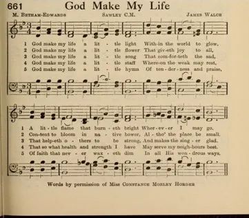 爱德华兹为儿童崇拜而创作的赞美诗《生命如光》(“God make my life a little light”),被收集在1887年出版圣诗集——《公理会教会赞美诗》 (Congregational Church Hymnal, 393页)中,并和另一首为儿童而作的晚祷赞美诗《小鸟要回窝了》( “The little birds now seek their rest”, Evening )于1983年首次出现在 《善言》 (Good Words) 的诗集中。救世军诗歌本也收录了这首诗歌( 1953 和1986的版本),在1986年的版本中并没有出现第五段歌词。迄今为止,这首圣诗在美国还广受欢迎,并在很多圣诗集中出现,通常包括所有段落(5段歌词)。《赞美诗.新编》也收录了这首圣诗,并广为教会传唱。