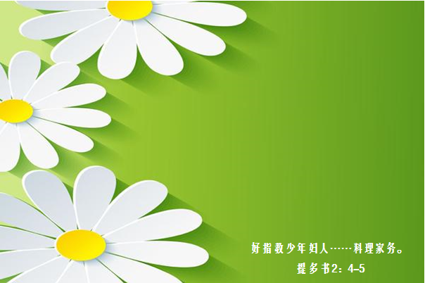 好指教少年妇人……料理家务。(提多书二章4~5节)