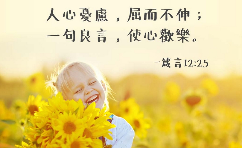 一句良言,使心欢乐。(箴言十二章25节)