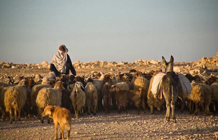 上图:一位贝都因牧羊人在以色列南地放羊。