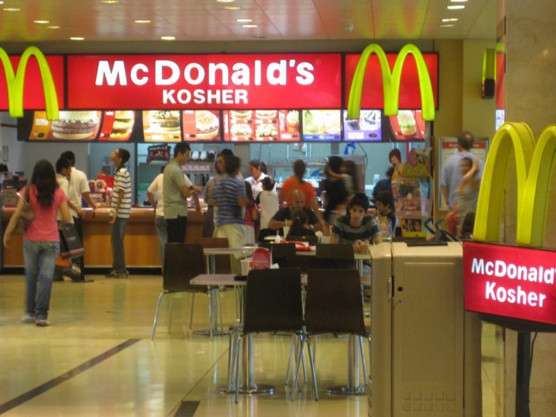 上图:在犹太Kosher认证的麦当劳里不能供应奶酪汉堡。在正统犹太人的家中,肉与奶要分用不同的容器与刀具,并尽可能分开冰箱与厨柜。
