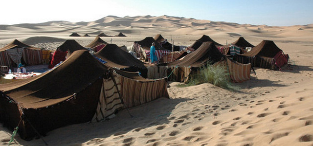上图:贝都因人用来织帐棚的黑山羊毛布料,又粗又黑,冬季可以抵御寒风,夏天可以遮荫。黑山羊毛的布料虽然多孔,当被雨淋过之后,就会缩水而变成防水布。使徒约翰在异象中看到「日头变黑像毛布」(启六12),所指的「毛布」就是用黑山羊毛或骆驼毛织成的粗布衣服。