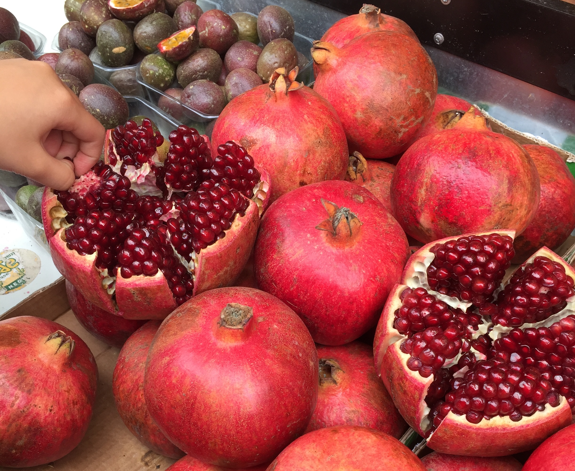 【出二十八33】「袍子周围底边上要用蓝色、紫色、朱红色线做石榴。在袍子周围的石榴中间要有金铃铛:」