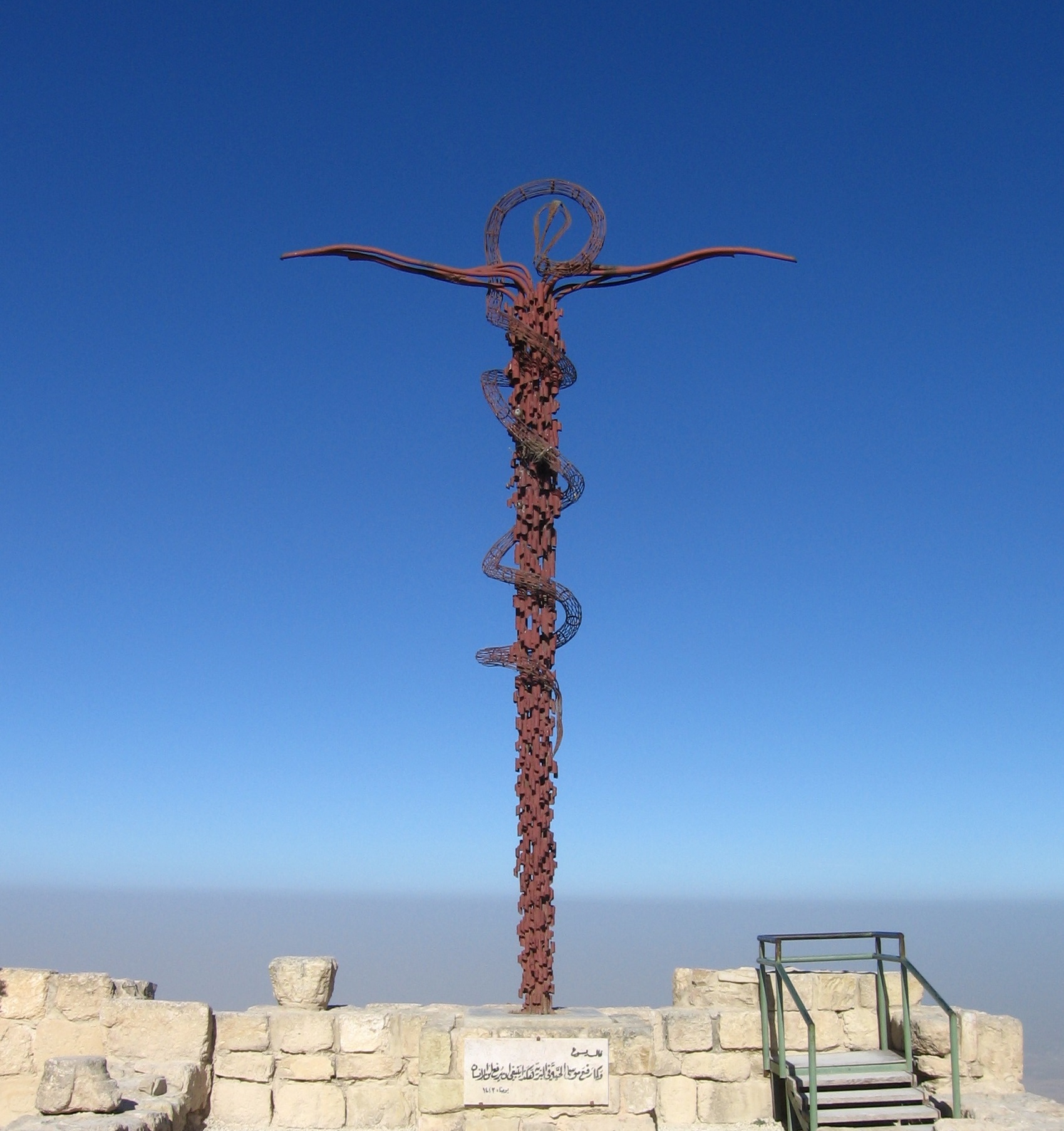 上图:从毗斯迦山/尼波山远眺应许之地。毗斯迦山可能就是现代的Ras es-siyagha,是亚巴琳山脉中第二高峰,海拔约800米,与尼波山相连,可以俯瞰死海和迦南地。亚巴琳是摩押高原西方边缘上的一大片陡峭的斜坡。