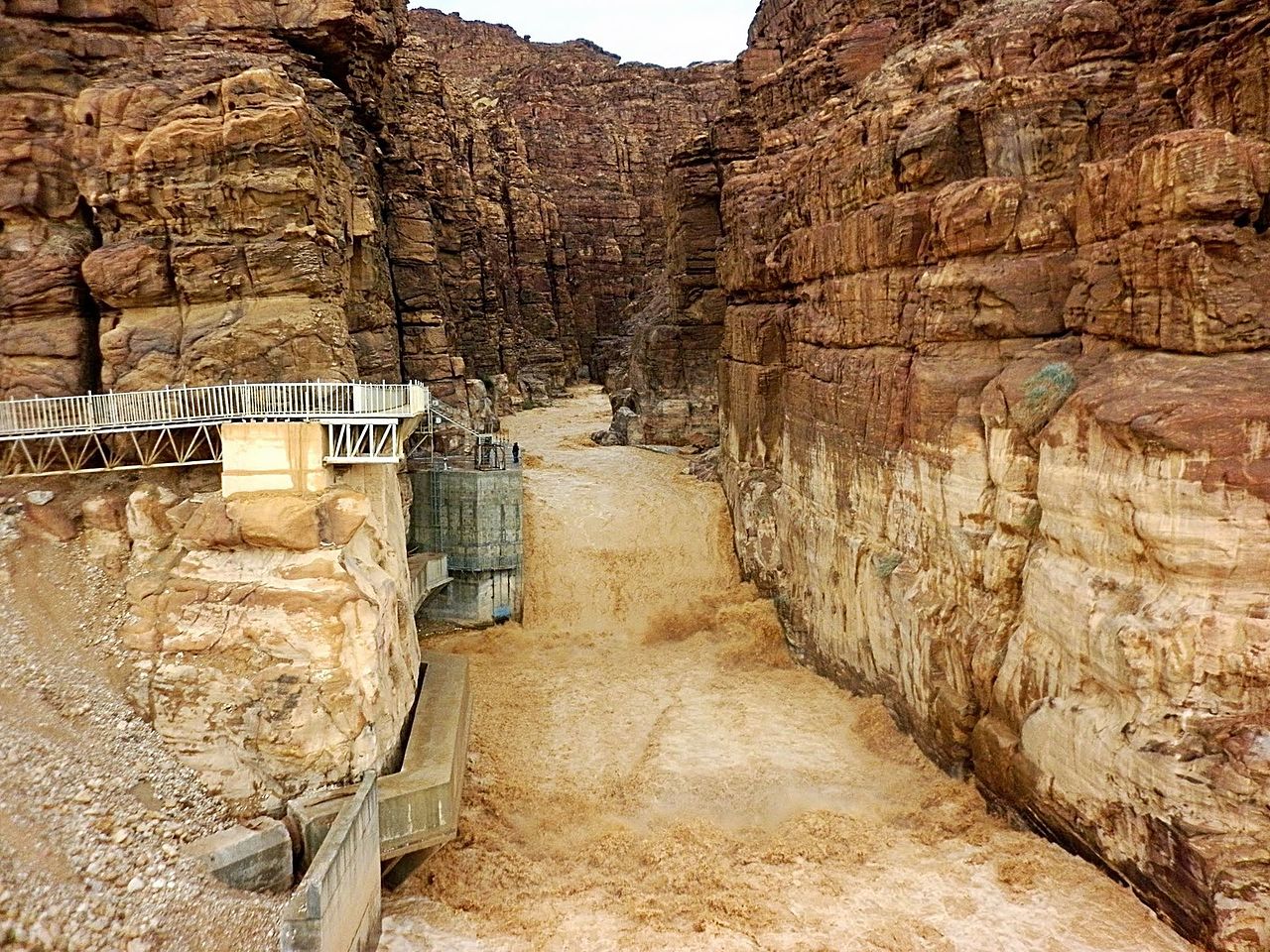 上图:亚嫩河谷底雨季的洪水。亚嫩河就是现代约旦的Wadi Mujib旱溪,河谷很深,从海拔900米一直到海平面以下400米的死海。1,300米的高度落差结合来自谷地7条支流的常年流水,使得这里有超过300种植物、10种肉食动物,以及许多永久性与季节性鸟类。
