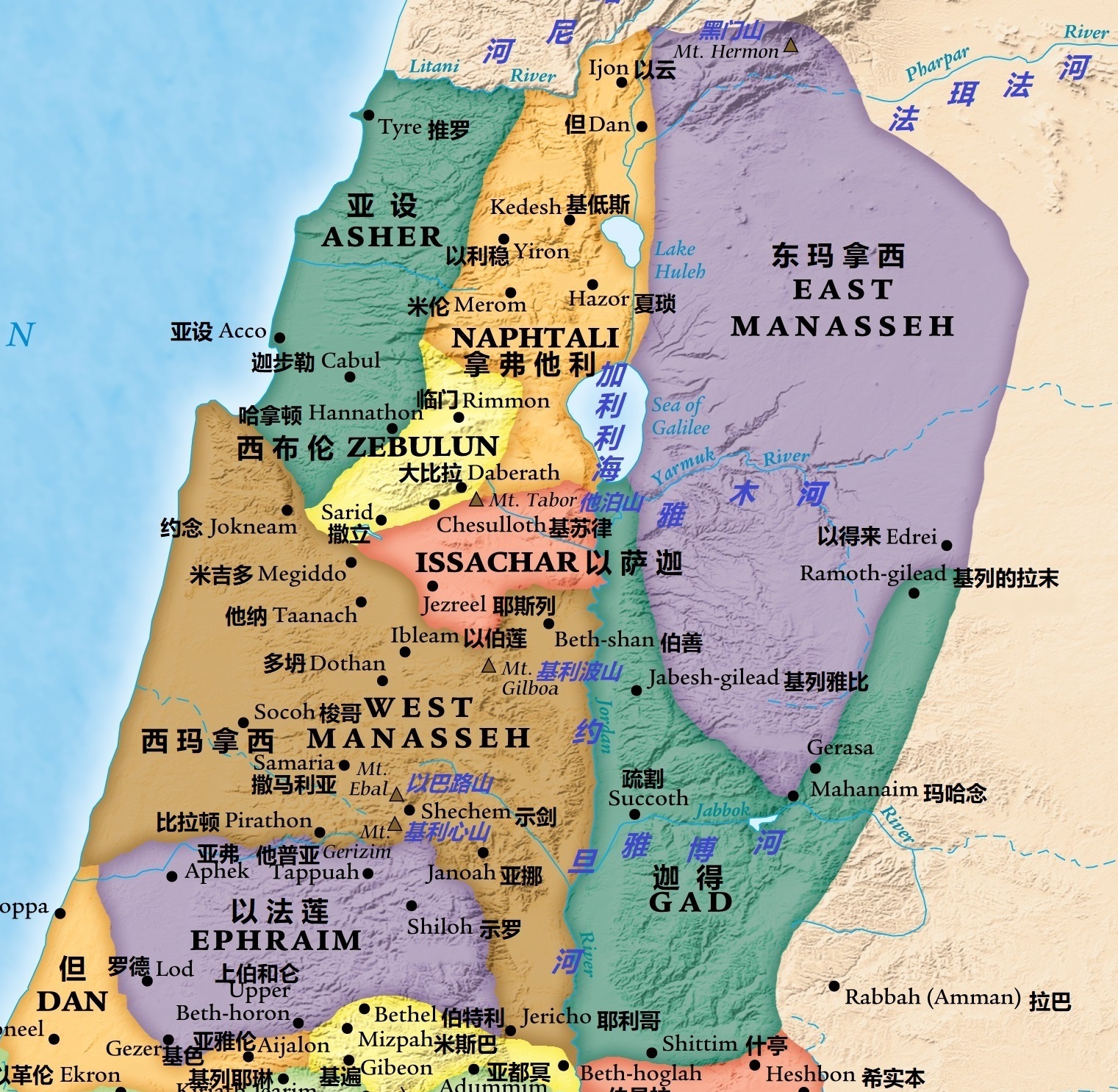 【书十七11】「玛拿西在以萨迦和亚设境内,有伯·善和属伯·善的镇市,以伯莲和属以伯莲的镇市,多珥的居民和属多珥的镇市;又有三处山冈,就是隐·多珥和属隐·多珥的镇市;他纳的居民和属他纳的镇市,米吉多的居民和属米吉多的镇市。」