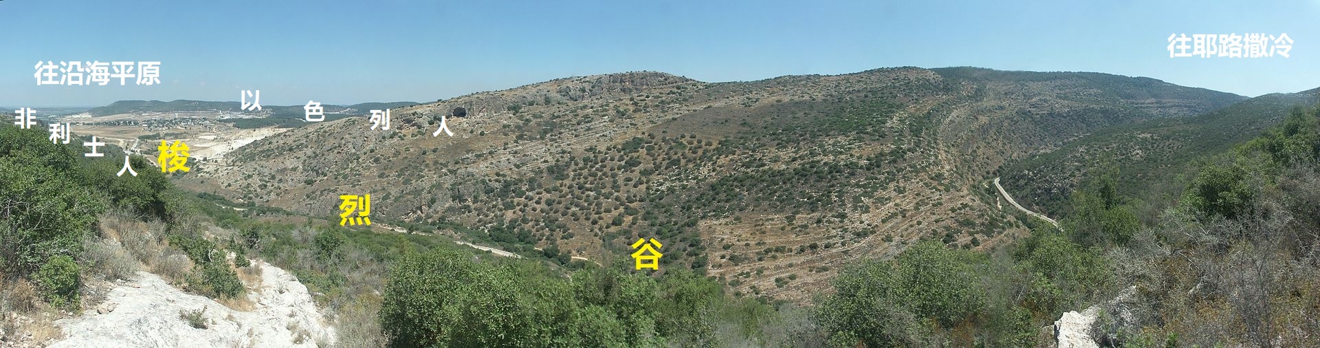 - 参孙的家乡琐拉和「亭拿」(1节)都是梭烈谷附近的城邑,相距大约8.5公里。琐拉在梭烈溪的上游,「亭拿」在梭烈溪的下游。梭烈谷是以色列人和非利士人的边界,参孙往来于以色列人和非利士人之间,结果是迷上了非利士女子;就像许多信徒在天国和世界之间游离,结果必然是爱世界过于爱天父。