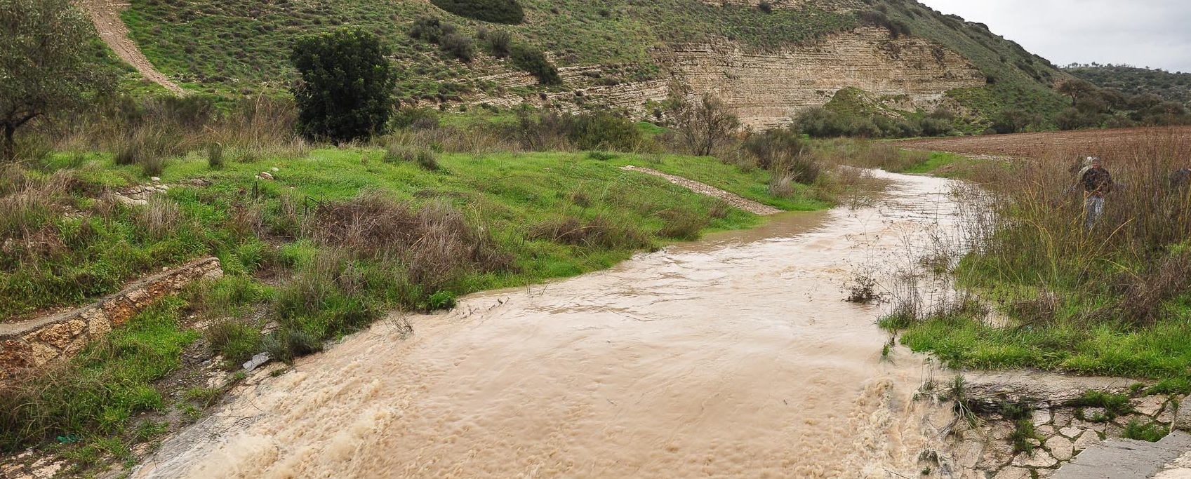 上图:下雨三天之后的以拉溪,河水满溢。