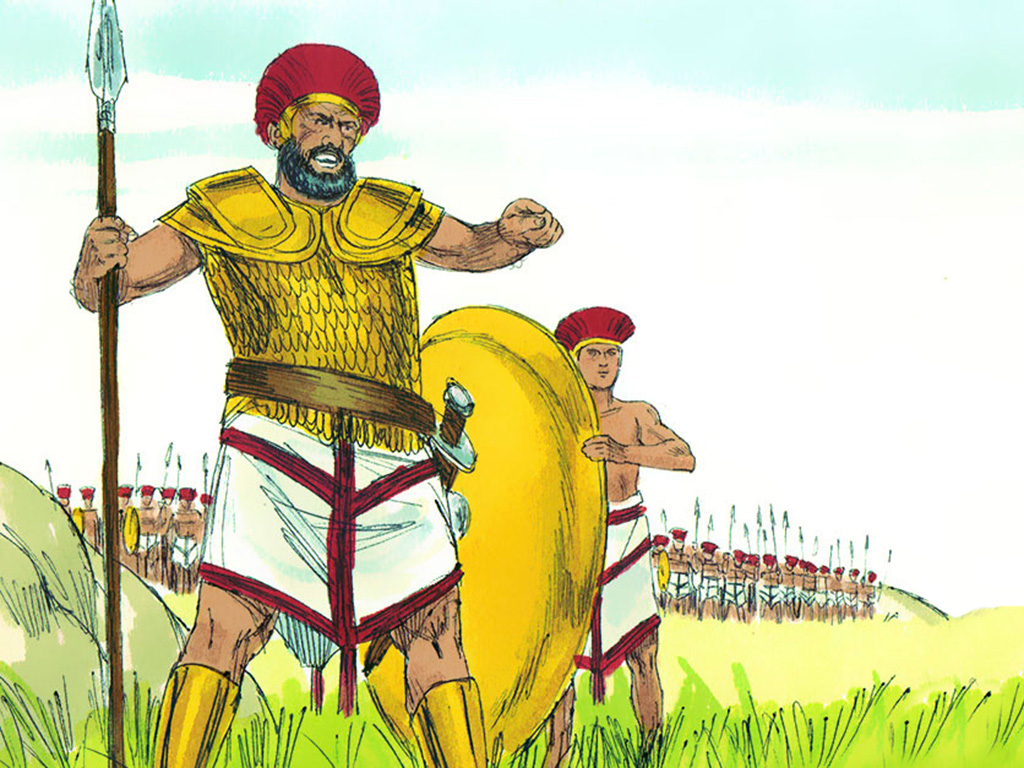 【撒上十七8】「歌利亚对着以色列的军队站立,呼叫说:『你们出来摆列队伍做什么呢?我不是非利士人吗?你们不是扫罗的仆人吗?可以从你们中间拣选一人,使他下到我这里来。」