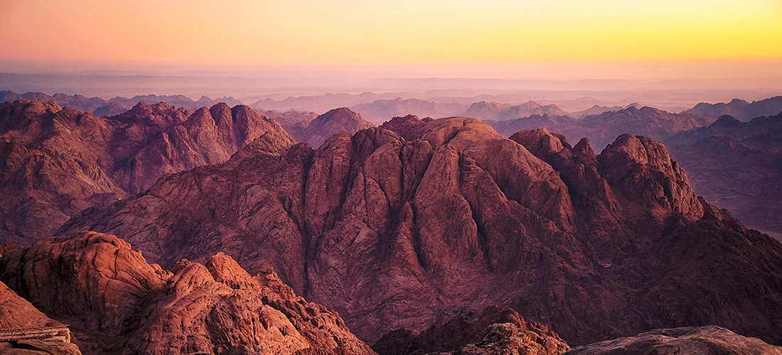 上图:西奈山附近的崎岖地形。西奈的旷野和巴兰的旷野都是海拔1200-1600米之间的高原丘陵,许多地方沟壑纵横、崎岖不平。以利亚四十天从别是巴走到这里,已经非常辛苦。但神却等他到了以后,才叫他回去(王上十九15)。