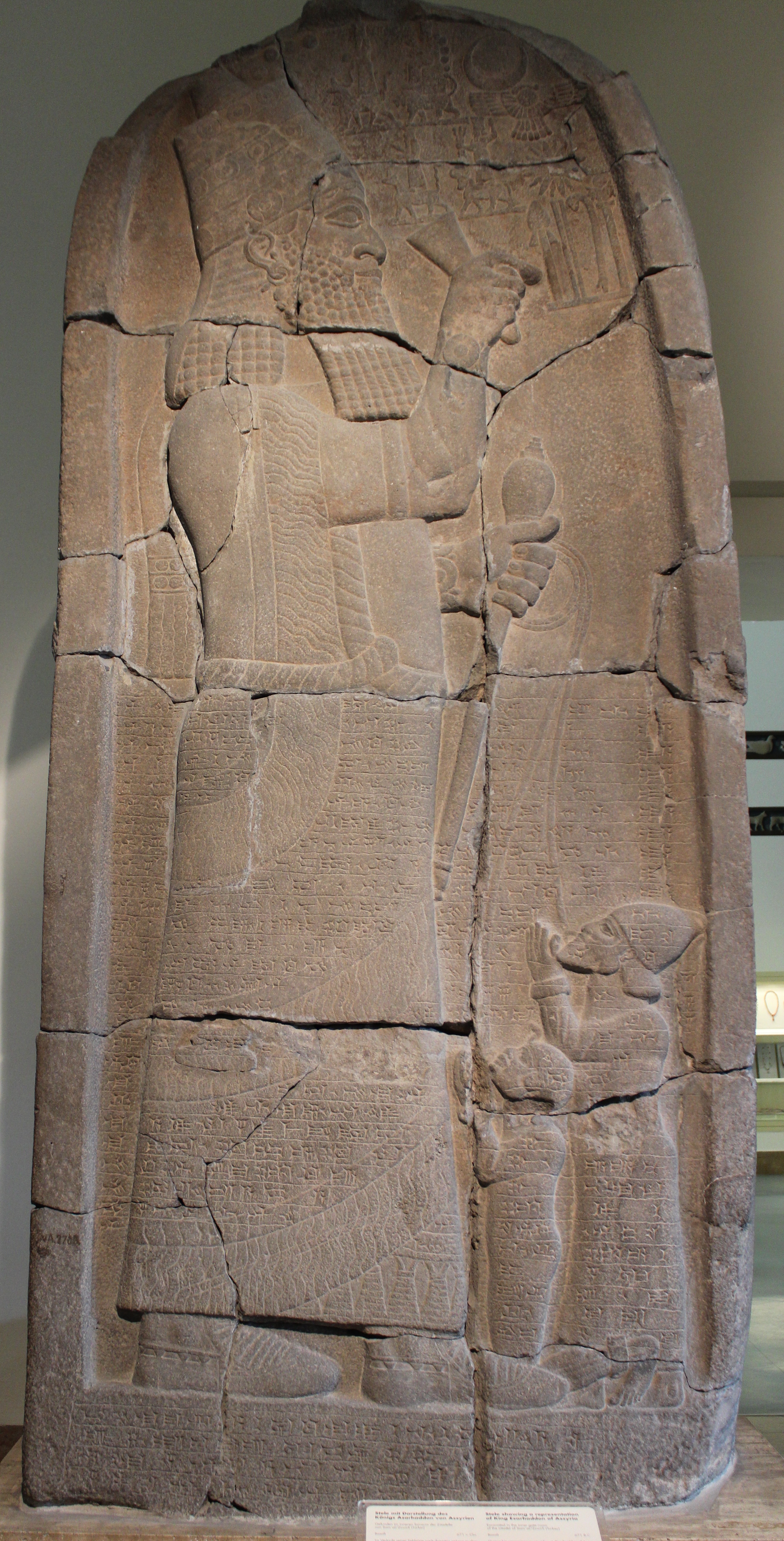 上图:亚述王以撒哈顿(Esarhaddon,主前681-669在位)的胜利石碑,记录了他于主前671年战胜埃及法老塔哈卡(Taharqa,主前690-664年在位)。石碑上,腓尼基王和埃及法老的嘴唇上的穿着环子,被亚述王撒哈顿用绳子牵着。