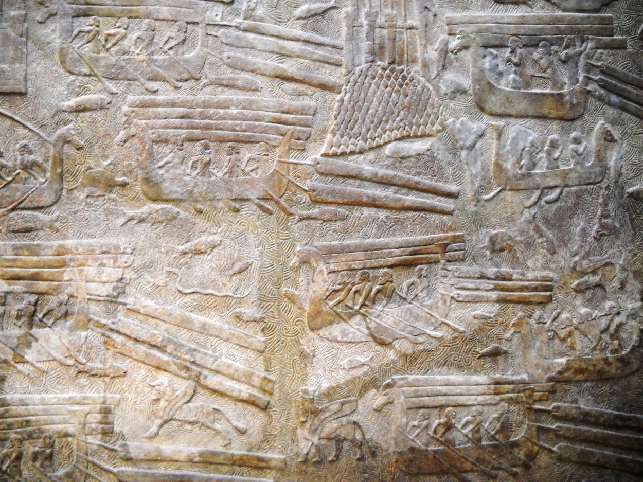 上图:主前716-713年的亚述浮雕,用一系列生动的画面描绘了腓尼基人装载、海运和卸载黎巴嫩的香柏木,用以建造亚述王的宫殿。在所罗门和所罗巴伯的时代,推罗人也用同样的方法为建造圣殿提供香柏木。出土于杜尔·沙鲁金(Dar Sharrukin)亚述王撒珥根二世(Sargon II,主前722-705年在位)的宫殿,收藏于卢浮宫。