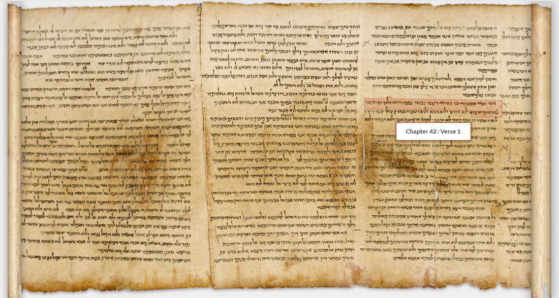 上图:1947年昆兰洞穴发现的死海古卷以赛亚书卷之62章1-2节。以赛亚书卷包含了希伯来圣经中的66章,抄写于主前125年之前,是死海古卷中最古老的一卷书,主耶稣时代的以赛亚书可能就是上图中的样式。原件存于耶路撒冷以色列博物馆。