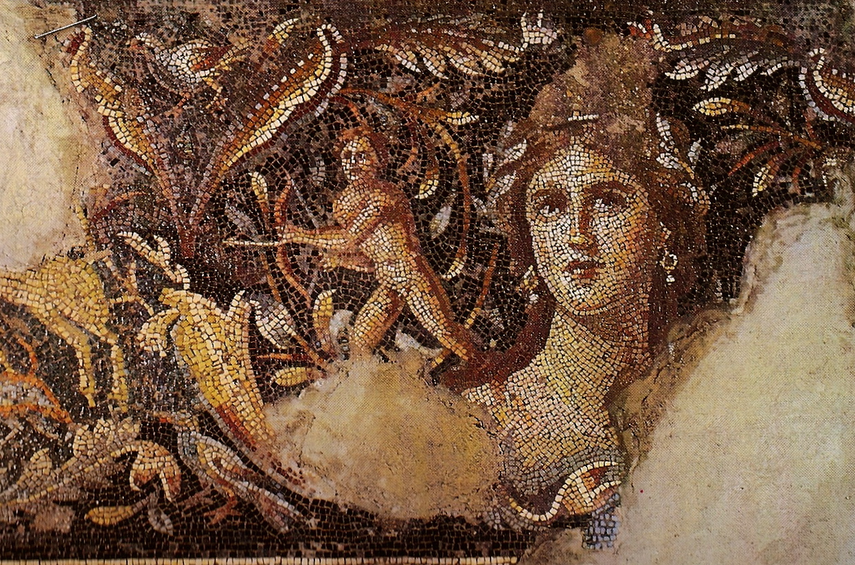 上图:著名的马赛克地板画「加利利的蒙娜丽莎」,位于拿撒勒北方6公里的Tzippori遗址。Tzippori是希律安提帕在加利利的首都,修建了罗马式剧场和许多豪宅,建筑业非常兴旺。传统认为这里是马利亚的老家,木匠约瑟和主耶稣很可能都在此打过工。