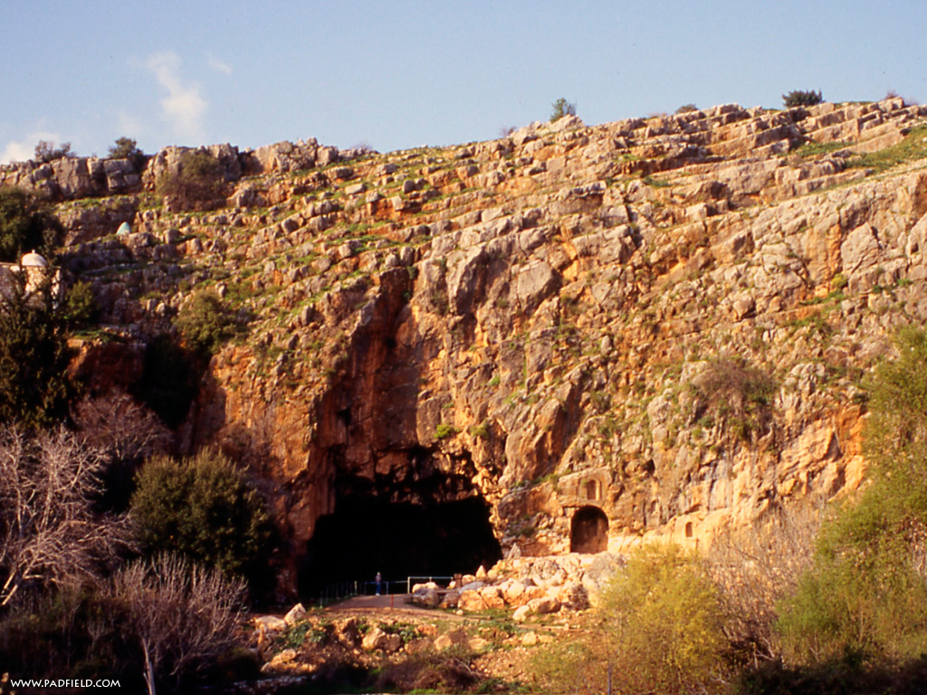 上图:凯撒利亚腓立比遗迹,至今可见岩壁上刻着大大小小的偶像神龛。使徒彼得就在这偶像林立的地方认信基督(太十六13-16;可8:27-30;路9:18-21),在外邦假神中间承认主耶稣是「永生神的儿子」。