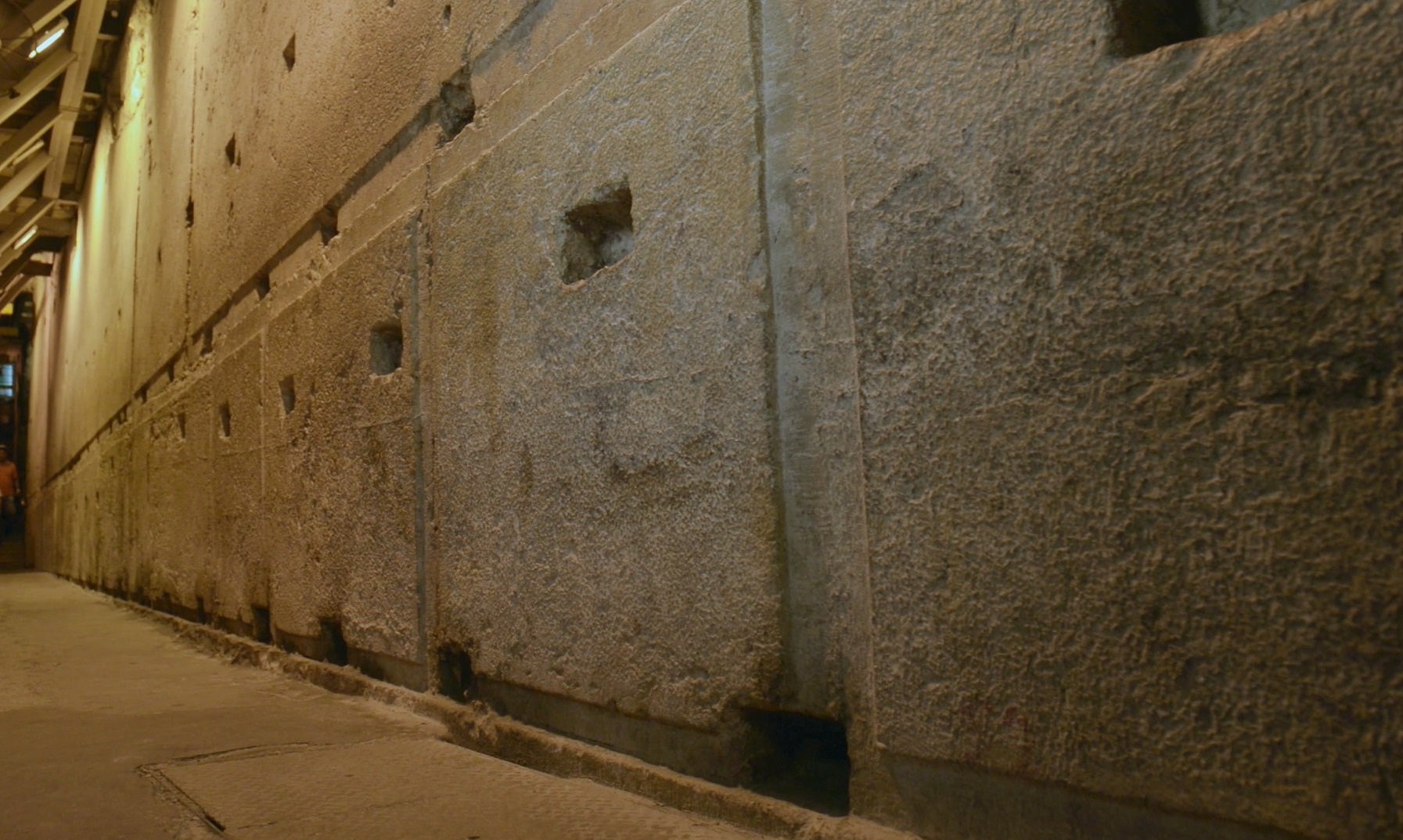 上图:西墙隧道中第二圣殿地基的巨石。根据《犹太古史记》卷15第11章记载,圣殿以白色且坚硬的石头建造,每块石头长25肘,高8肘,宽12肘。新约时代一肘大约是55.5厘米,因此这些石头都是13.8米x4.4米x6.7米的巨石。第二圣殿的石头已经拆毁,但埋在地下的地基已经被挖掘出来,一部分开辟为西墙隧道供人参观,可以想象第二圣殿之宏伟。