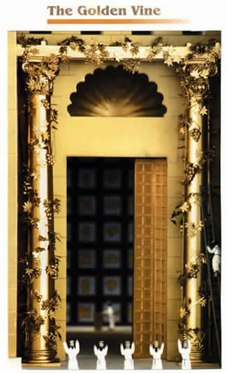 - 当时圣殿的顶部装饰有金葡萄,入口处有金葡萄树,每串葡萄和人一样高。主耶稣在前往客西马尼园的途中要经过圣殿,可能看到圣殿顶部巨大的金葡萄在逾越节满月的光辉下闪闪发光,因此借题发挥。