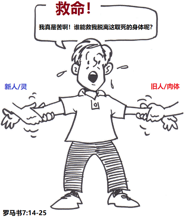 我们初信的时候对「肉体」的败坏还不够认识,以为「肉体」似乎死了,但不久就会发现它还活得很顽强,甚至越活越大。「我真是苦啊」是信徒成圣历程中必然的体验,神一次又一次地把我们带到尽头,让我们肯放下自己,承认自己不能,让神来救我们「脱离这取死的身体」。