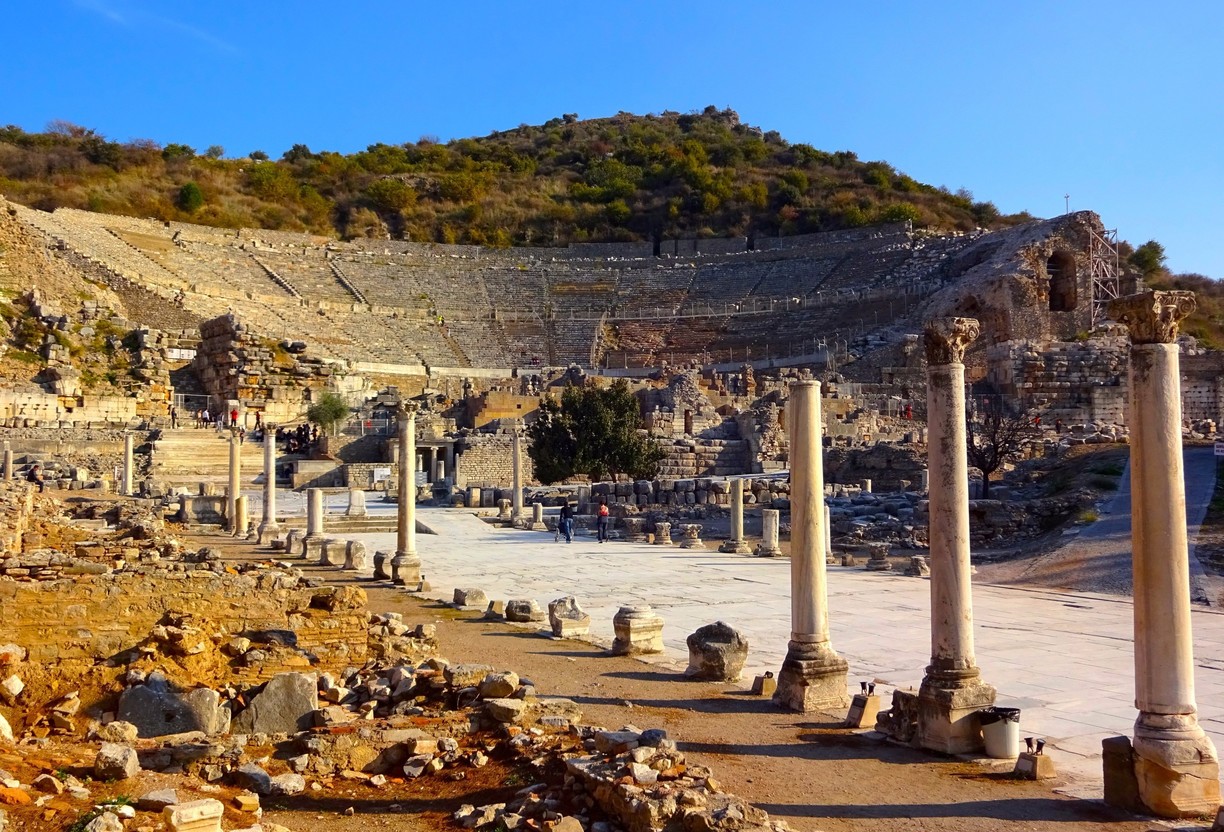 上图:以弗所大剧场遗址,由罗马人于主后1世纪改造而成,依山而建,面向大海,气势磅礴。这个环形大剧场可以容纳24,000人,可能是古代最大的剧场,至今仍然可使用。剧场已经如此宏伟,其他的娱乐设施更是一应俱全,吸引人「肉体的情欲、眼目的情欲,并今生的骄傲」。生活在以弗所的使徒约翰,尤其能体会「不要爱世界和世界上的事。人若爱世界,爱父的心就不在他里面了」(约壹二15)。