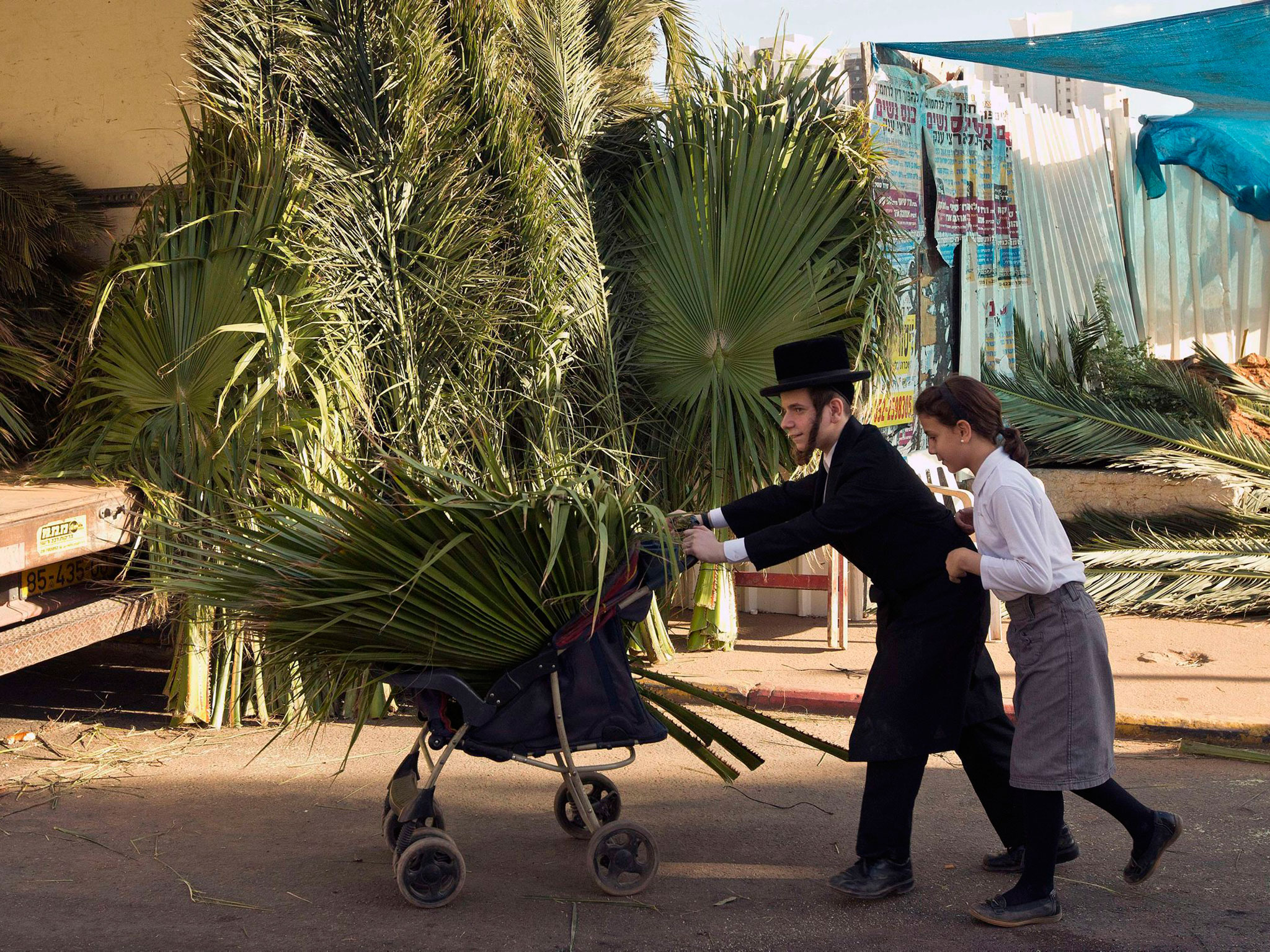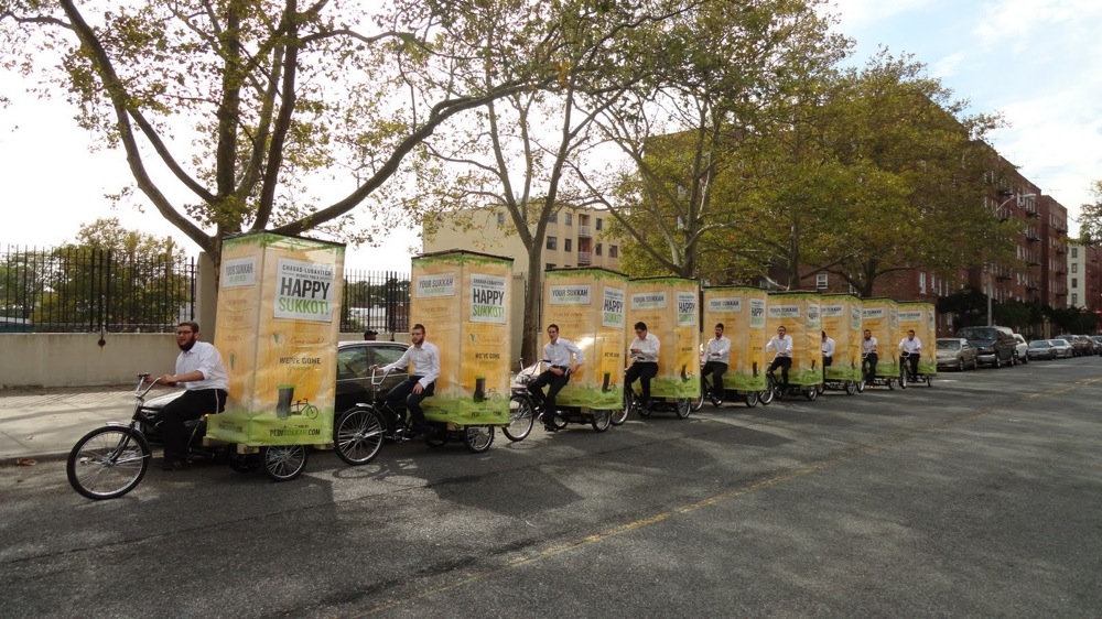 上图:纽约犹太人在住棚节拉着棚子上街,邀请路人进去坐一坐。正统犹太人平时拘泥于洁净的礼仪,不愿与外邦人来往,但住棚节却是他们唯一乐意邀请外邦人一同欢庆的特殊节日,因为圣经说:「所有来攻击耶路撒冷列国中剩下的人,必年年上来敬拜大君王——万军之耶和华,并守住棚节」(亚十四16)。