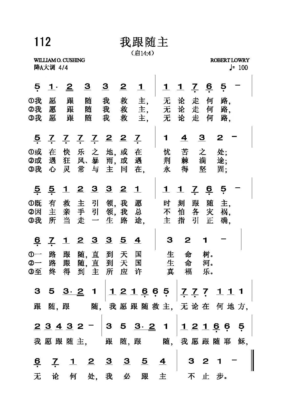 两年后,当代最负盛名的圣乐作曲家劳瑞(Robert Lowry, 1826-1899)读到这首见证诗时,深受感动,为它谱曲。这首诗歌即刻广传,激励了许多人愿意奉献自己跟随主。